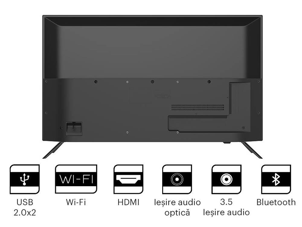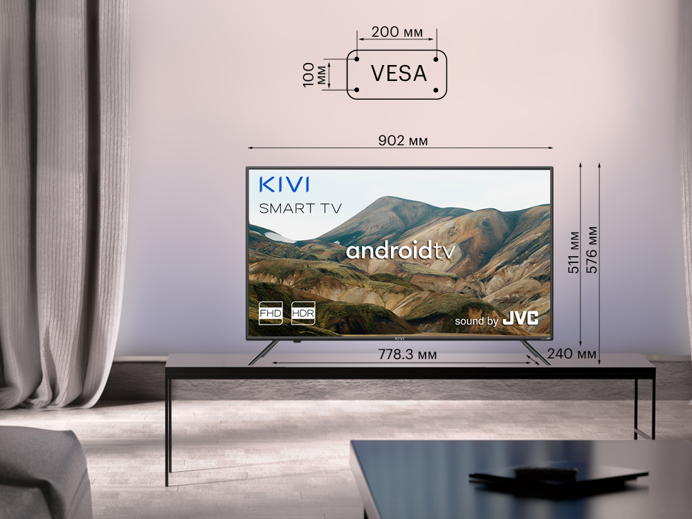 (40' DLED 1920x1080 FHD, SMART TV (Android TV 9.0 ugradable to ATV 11), WiFi, 3x HDMI, 2x USB, Bluetooth, Headphone jack 3.5 mm, DVB-T/T2/C, OSD Language: ENG, RU, RO, Sound by JVC, Speakers 2x8W Dolby Audio, Smart remote control RC40 with Voice control, VESA 200x100, 6.4 Kg)