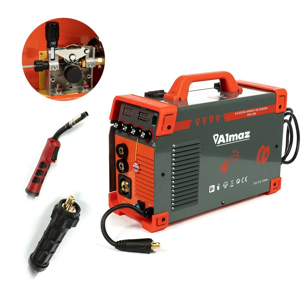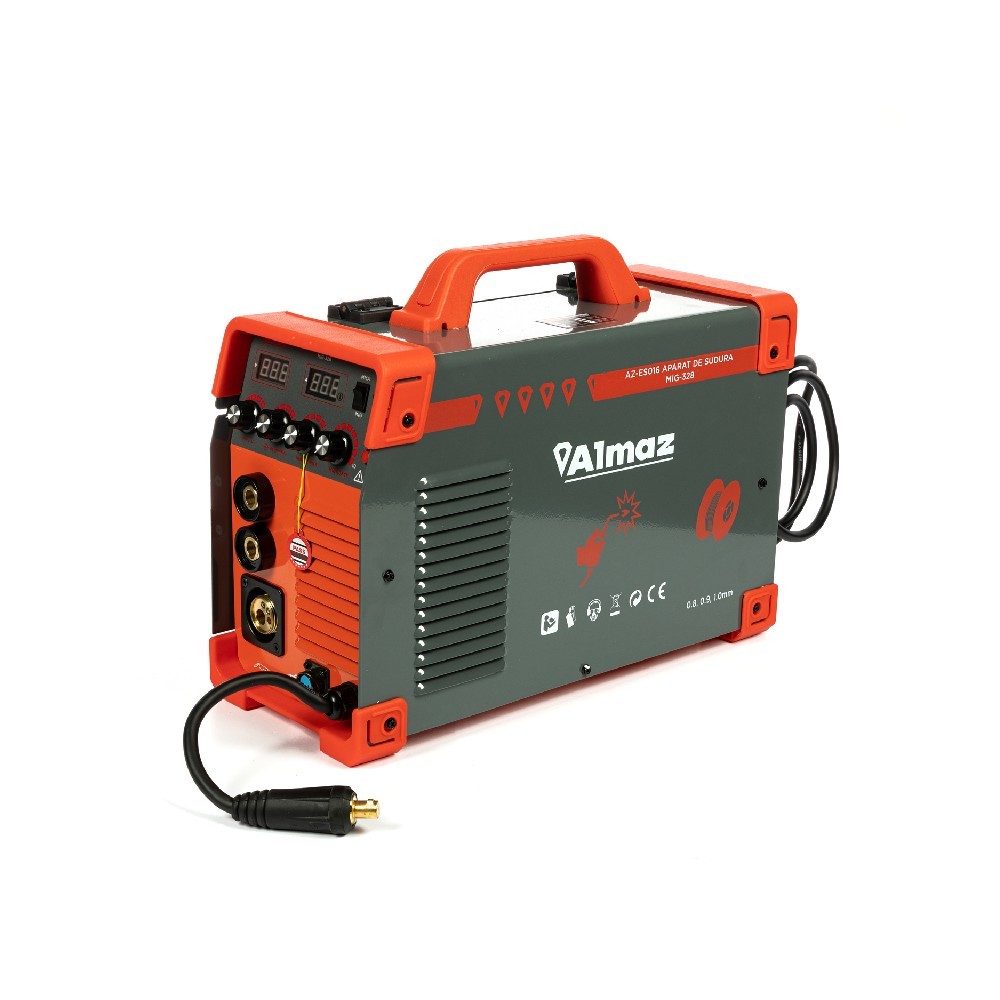 Aparatul de sudură Almaz MIG-328 este un echipament de înaltă performanță, proiectat pentru a oferi rezultate excelente în sudarea MIG. Cu dimensiuni de 57x31x45 cm, acesta se evidențiază printr-o construcție compactă, facilitând utilizarea și transportul. Greutatea netă a aparatului este de 18.15 kg, iar greutatea brută este de 16.55 kg, ceea ce îl face ușor de manevrat. Aparatul este echipat cu un afișaj digital, care oferă informații clare despre parametrii de sudare.