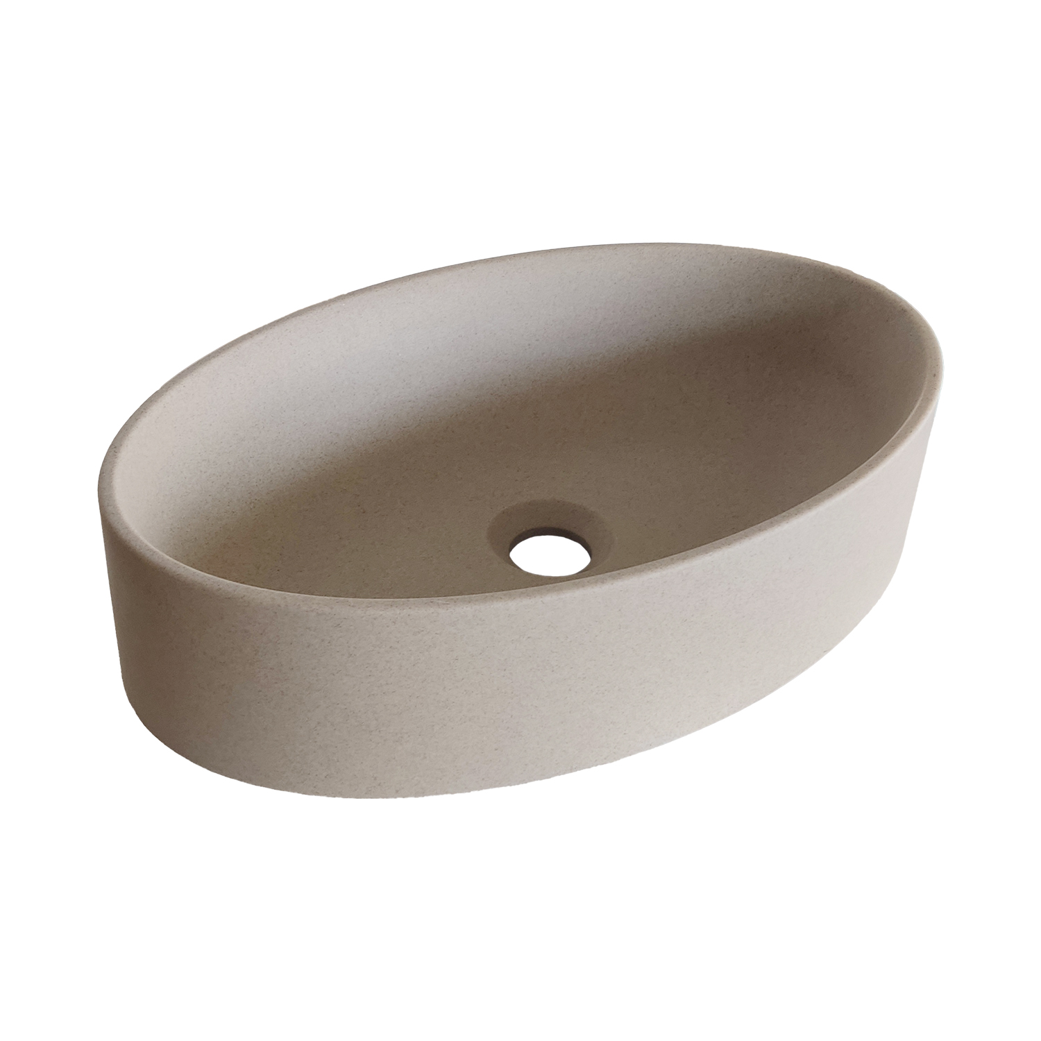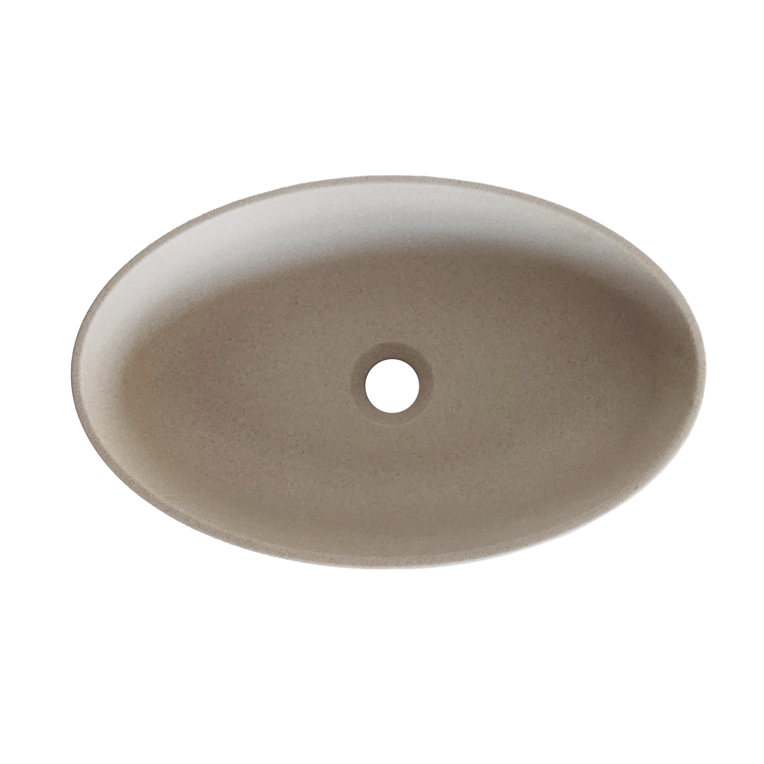 Forma ovală conferă un aspect fluid și sofisticat, integrându-se perfect în designul băii.