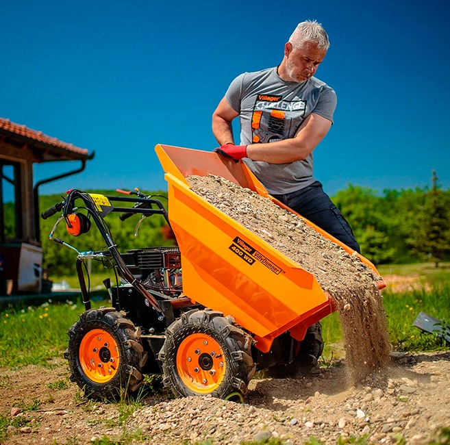 Mini basculanta Villager VILLY DUMPER - WD 400 este o soluție fiabilă și practică pentru transportul și descărcarea diferitelor materiale. Este echipată cu un motor puternic Loncin, cu o capacitate de 196 cm³, putere de 3.6 kW și turație de 3600 rpm, ceea ce asigură o funcționare stabilă și eficientă. Motorul în 4 timpi este durabil și economic în consumul de combustibil. Capacitatea de încărcare de 400 kg o face ideală pentru lucrări de construcții și activități agricole. Containerul cu dimensiunile de 940 × 635 × 330 mm permite transportul atât al materialelor vrac, cât și al celor grele. Pentru un confort sporit în utilizare, înălțimea mânerului este de 890 mm, potrivită pentru majoritatea utilizatorilor. Basculanta dispune de o transmisie dințată robustă, care îi oferă o bună tracțiune și fiabilitate. Are trei viteze înainte și una înapoi, permițând manevrarea ușoară chiar și în spații restrânse. Greutatea totală a echipamentului este de 147 kg, ceea ce îi conferă stabilitate în timpul lucrului. Funcția principală este bascularea frontală, care permite golirea rapidă și eficientă a containerului. Construcția solidă garantează o durată de viață îndelungată, chiar și în condiții de utilizare intensă. Această mini basculantă este un ajutor indispensabil pentru gospodărie, șantier sau lucrări de peisagistică.