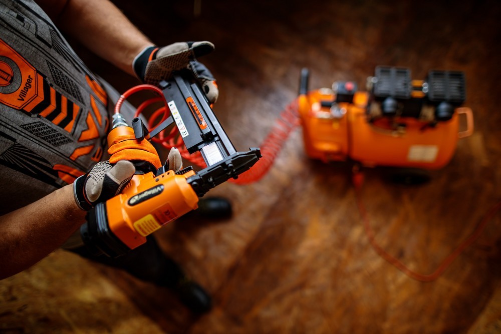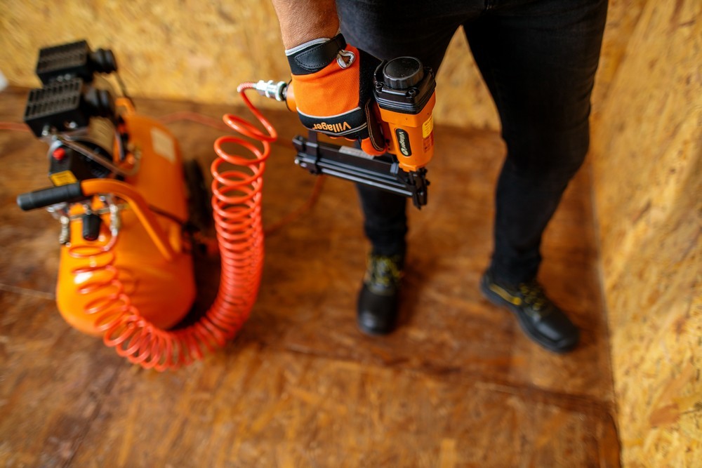 Capsatorul pneumatic VAT 50/9040 2in1 Villager este un instrument versatil și eficient, ideal pentru diverse aplicații de capsare. Cu o lățime a capselor de 5,7 mm și o adâncime ajustabilă între 16 și 40 mm, acesta oferă flexibilitate și precizie în lucrări. Este compatibil cu două tipuri de capse: 1,06 mm/ac și 1,26 mm/ac, acoperind o gamă variată de nevoi. Presiunea de funcționare variază între 6 și 12 bar, asigurând o performanță optimă în diferite condiții. Volumul necesar de aer este de 85 l/min, ceea ce îl face eficient și ușor de integrat în sistemele pneumatice existente. Capacitatea de încărcare a magazinului este de 100 de capse, ceea ce permite lucrări continue fără întreruperi frecvente pentru reîncărcare. Designul robust și ergonomic asigură confort și durabilitate în utilizare. Capsatorul VAT 50/9040 este ideal pentru utilizare în ateliere și proiecte de construcție, oferind fiabilitate și eficiență.
