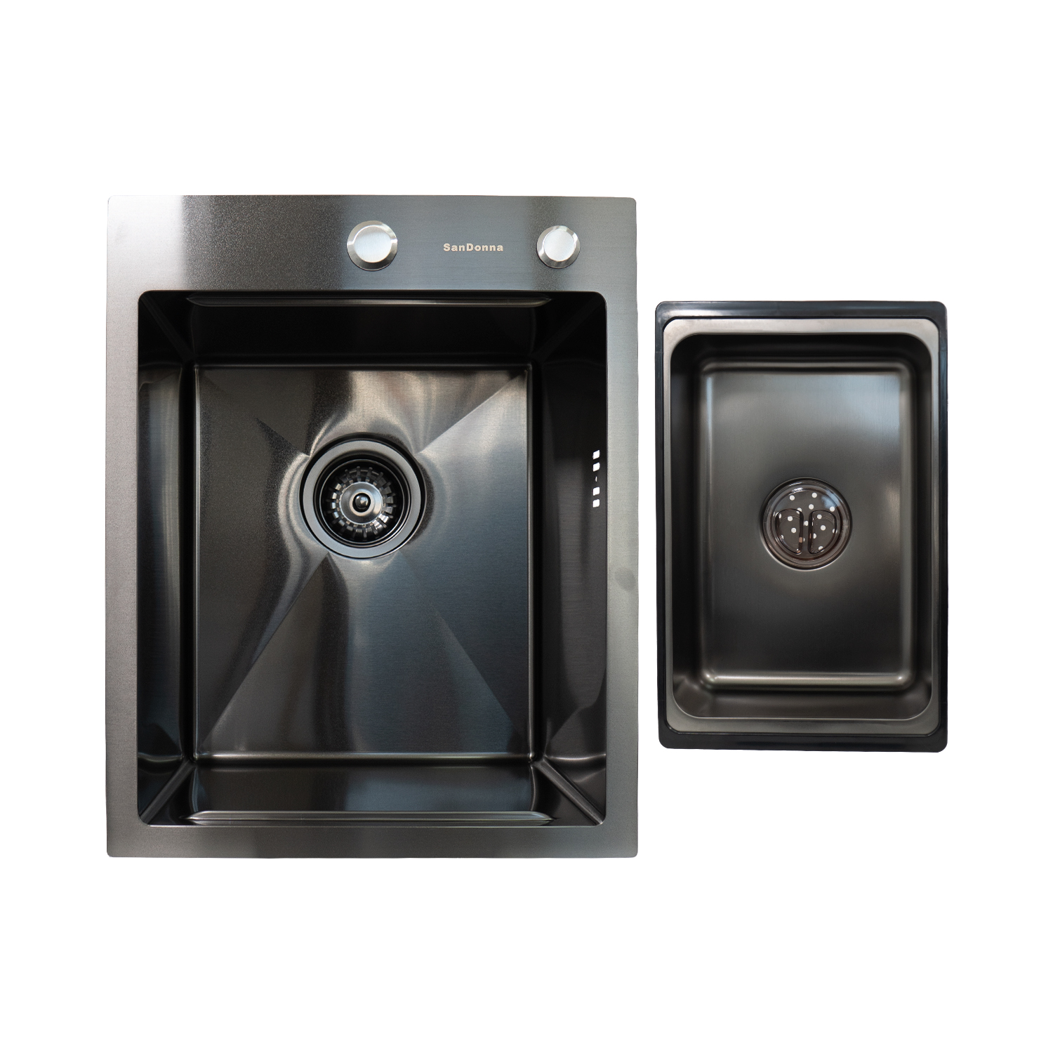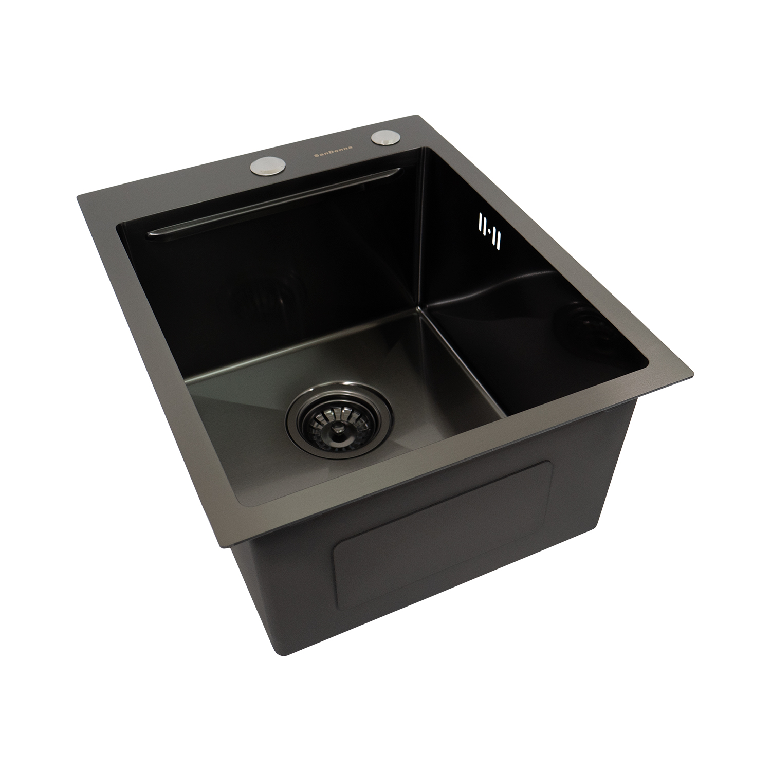 Îți dorești o bucătărie care să reflecte rafinament și stil modern? Chiuveta handmade SanDonna HD4050 (Negru) este alegerea perfectă pentru a adăuga un accent sofisticat în spațiul tău culinar. Cu dimensiunile de 400 x 500 mm și grosimea de 3 mm, această chiuvetă din inox combină un design elegant cu o durabilitate excepțională.