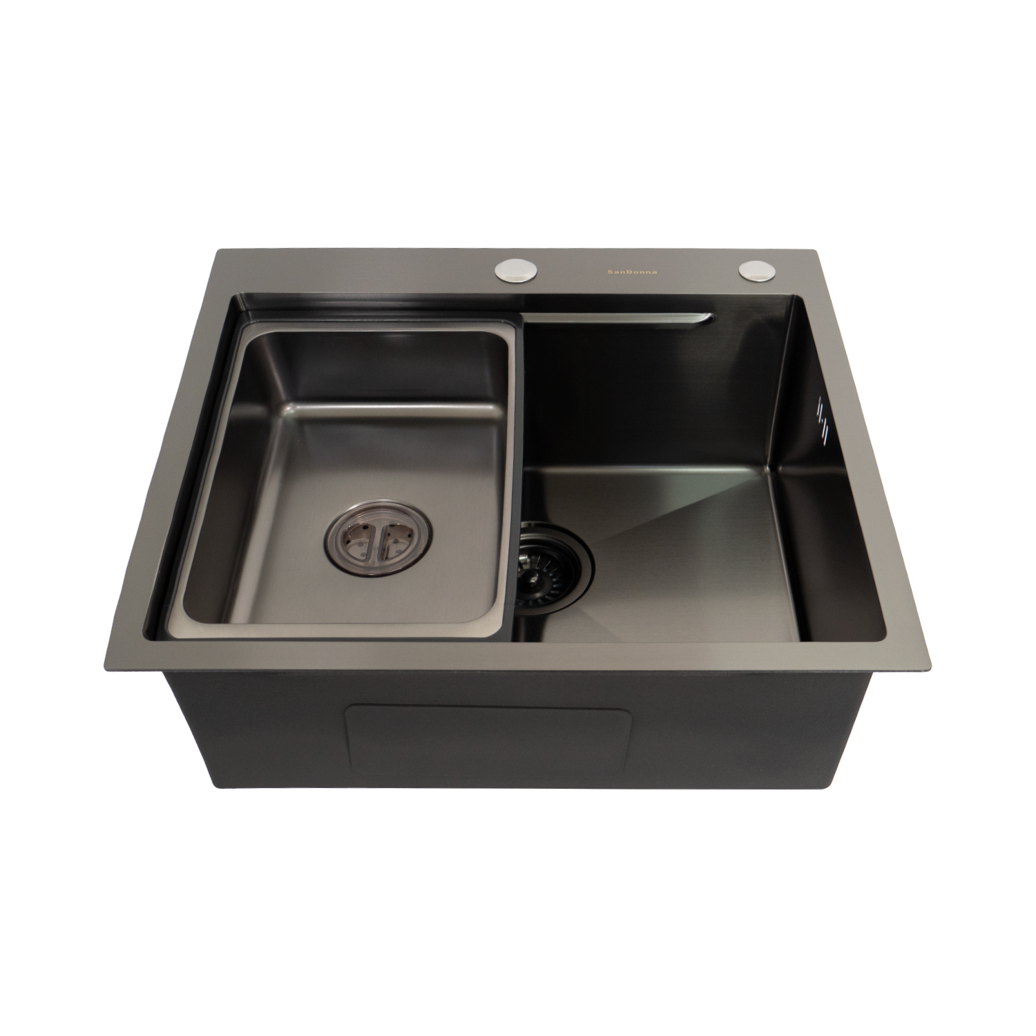 Îți dorești o bucătărie care să strălucească de eleganță și stil? Chiuveta handmade SanDonna HD5550 (Negru) este soluția perfectă pentru a adăuga un accent sofisticat și modern în spațiul tău culinar. Cu dimensiunile de 550 x 500 mm și grosimea de 3 mm, această chiuvetă din inox nu doar că impresionează prin designul său elegant, dar oferă și o durabilitate de lungă durată.