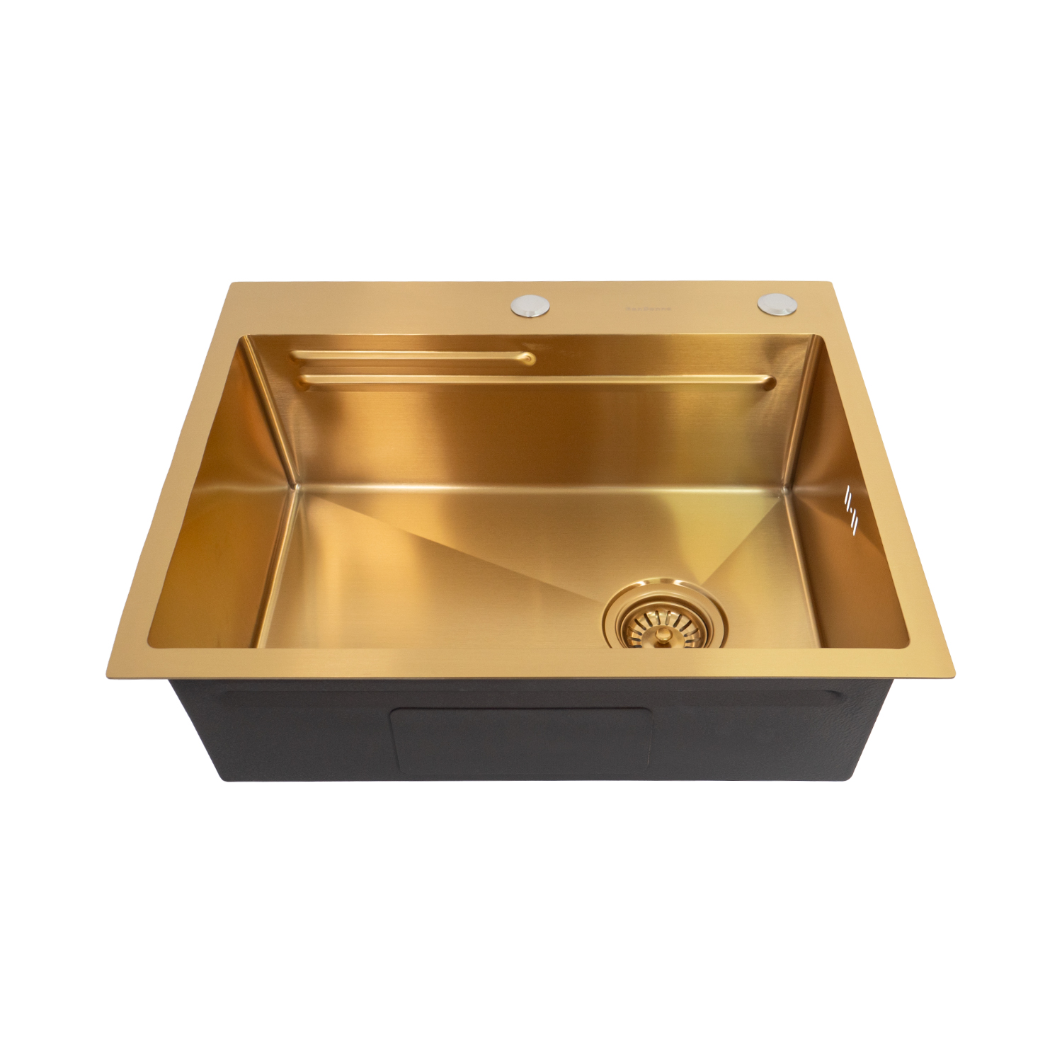 Cum poți adăuga lux și funcționalitate în spațiul bucătăriei? Chiuveta handmade SanDonna HD6050 (Gold) nu este doar o chiuvetă, ci un element stilat care transformă orice bucătărie într-un spațiu rafinat. Cu dimensiuni de 600x500x230 mm și o adâncime de 230 mm, această chiuvetă oferă suficient spațiu pentru utilizare confortabilă. Finisajul în nuanța "Auriu" îi conferă un aspect elegant și modern, care atrage imediat atenția. Chiuveta este fabricată din oțel inoxidabil de înaltă calitate, oferind durabilitate și rezistență, cu o grosime a materialului de 3.0+1.0 mm. În plus, este echipată cu scurgător, dozator de săpun și chiar un tocător integrat. Aceasta o face nu doar un element estetic, ci și o soluție practică pentru orice bucătărie. SanDonna HD6050 Auriu va deveni elementul central al bucătăriei tale, combinând stilul cu funcționalitatea.
