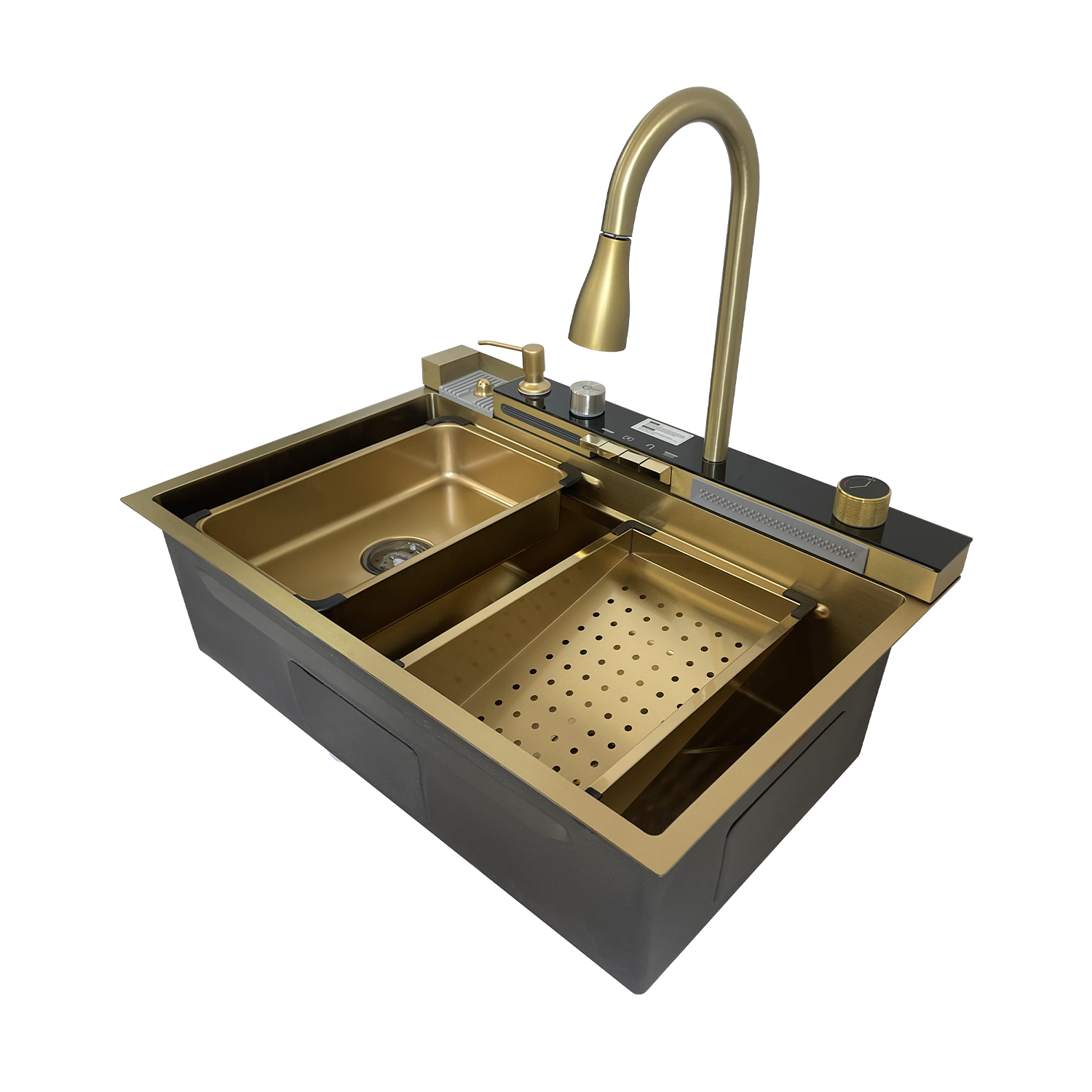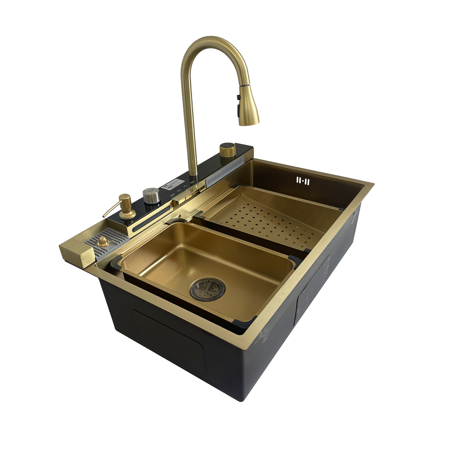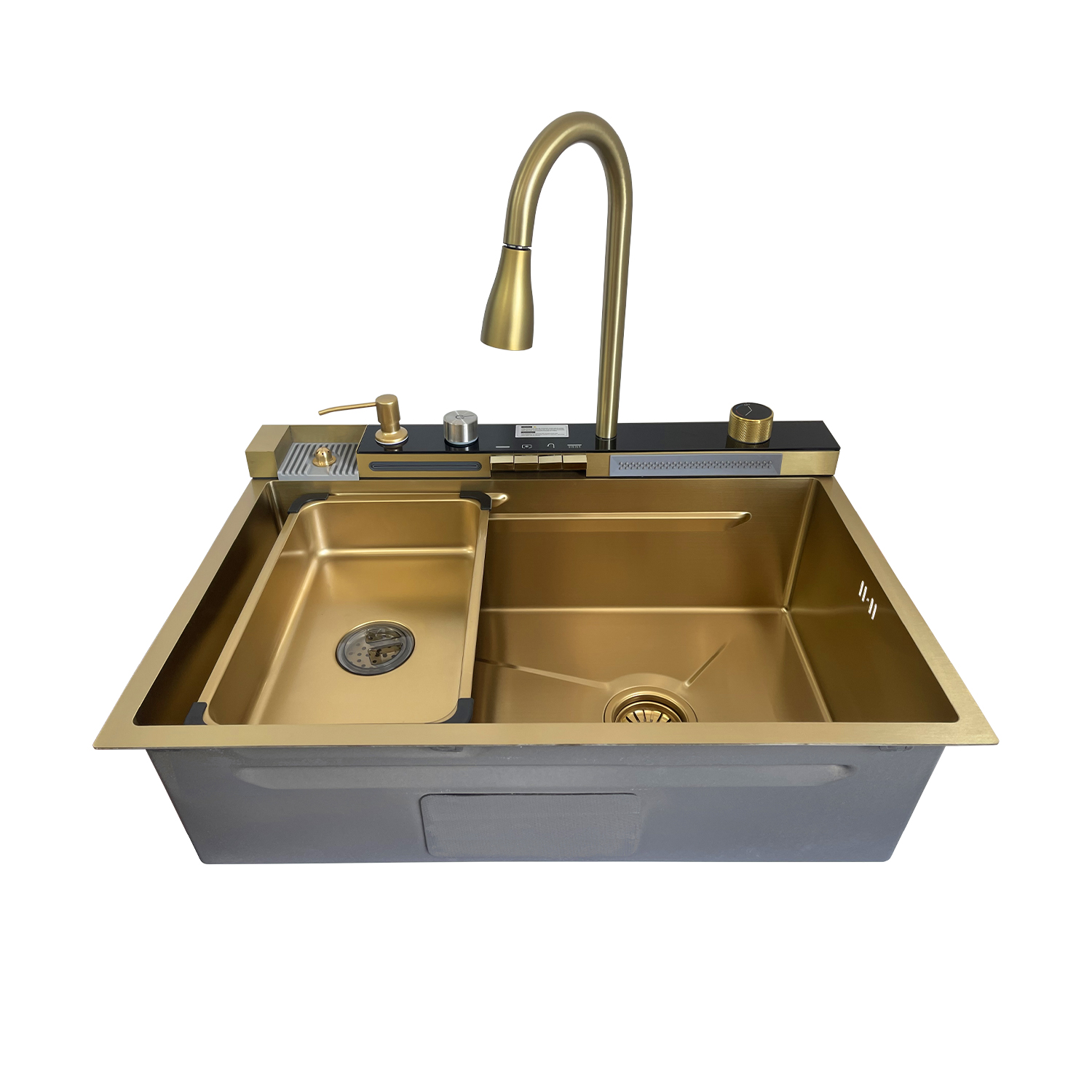 Căutați o chiuvetă care să combine stilul rafinat cu funcționalitatea de zi cu zi? Chiuveta handmade SanDonna HD7550 în finisaj auriu este soluția ideală pentru a transforma bucătăria într-un spațiu elegant și practic. Cu dimensiuni de 750x500x230 mm și o adâncime de 230 mm, această chiuvetă oferă un spațiu generos pentru toate activitățile culinare. Finisajul auriu adaugă o notă de lux și sofisticare, făcându-l un element de design deosebit de atrăgător. Fabricată din oțel inoxidabil cu grosimea de 3.0+1.0 mm, chiuveta asigură durabilitate și rezistență la utilizare intensivă. Chiuveta este echipată cu accesorii esențiale: un tampon din cauciuc pentru reducerea zgomotului, un sifon eficient, 8 cleme de prindere pentru instalare sigură, un dozator de săpun integrat și o tavă pentru resturi, toate în aceeași nuanță aurie. Aceste caracteristici nu doar că adaugă funcționalitate, dar și completează aspectul elegant al chiuvetei. SanDonna HD7550 (Auriu) nu doar că îmbunătățește estetica bucătăriei, dar oferă și un confort sporit în fiecare zi. Alegerea acestei chiuvete va aduce un plus de rafinament și eficiență în spațiul dumneavoastră culinar.