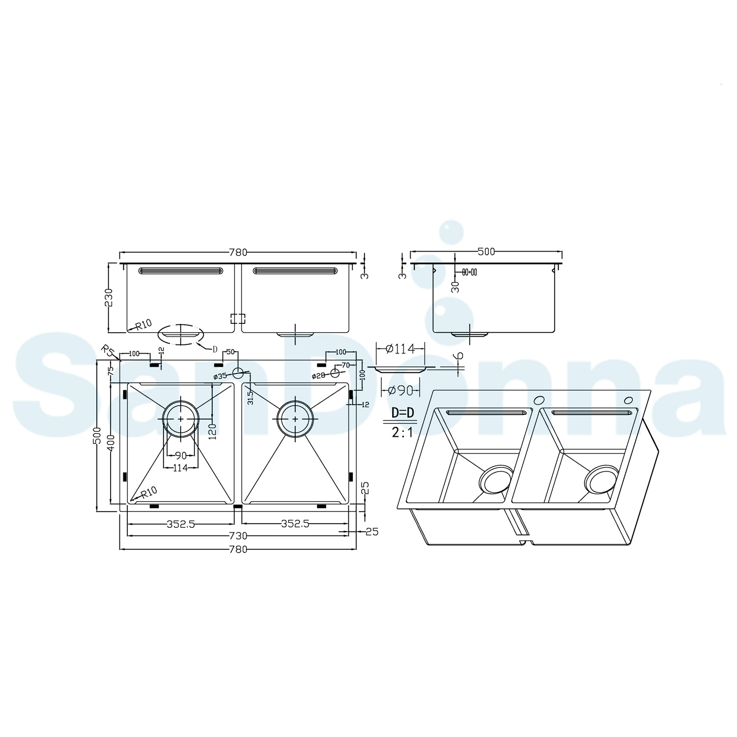 - Chiuveta handmade SanDonna HD7850 dubla (Crom satin)