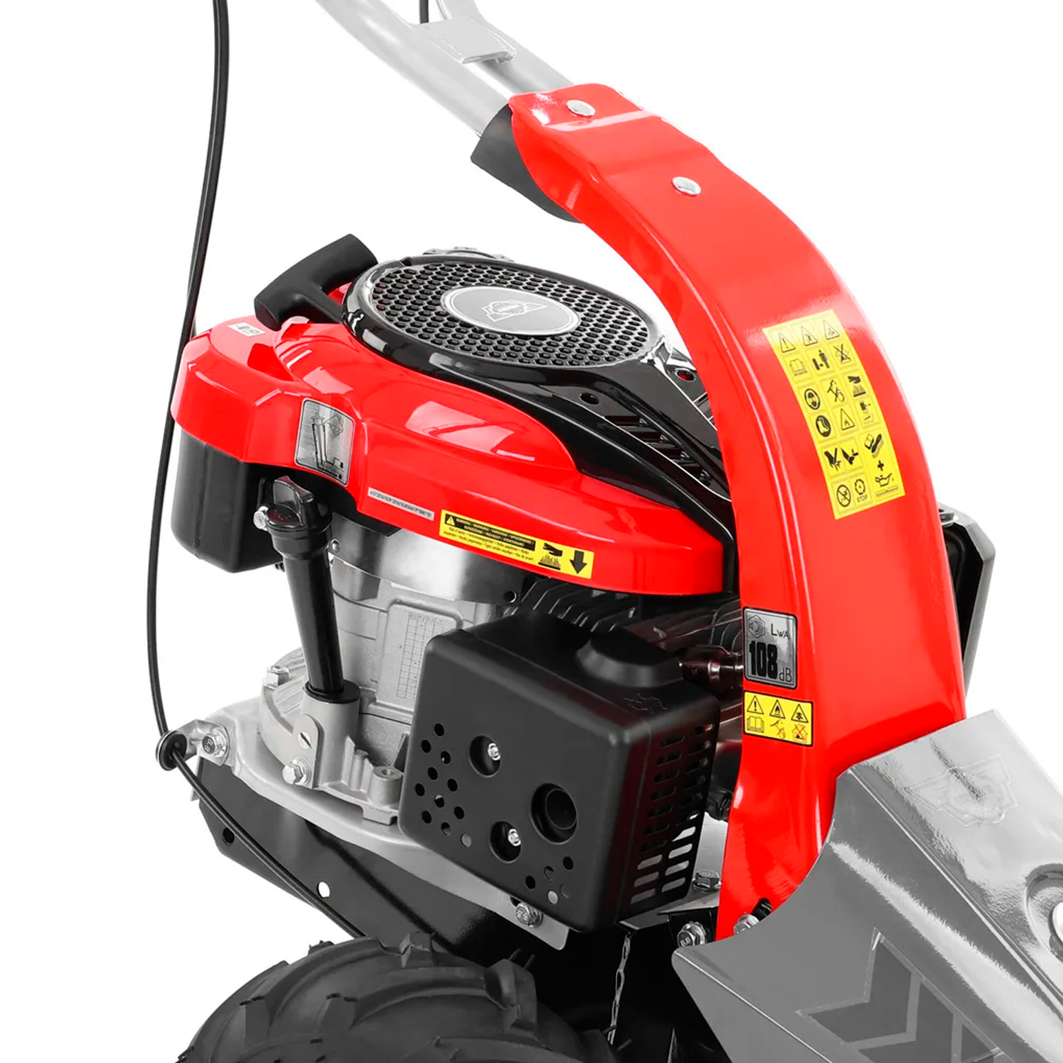Cu o lățime de cosire generoasă de 87 cm, HECHT 587 permite acoperirea rapidă a suprafețelor de până la 2000 m², fiind ideală pentru grădini mari, livezi sau terenuri extinse. Înălțimea de cosire reglabilă între 30 și 80 mm asigură flexibilitate în funcție de tipul de vegetație, iar viteza de deplasare de 3 km/h oferă un control optim în timpul lucrului.