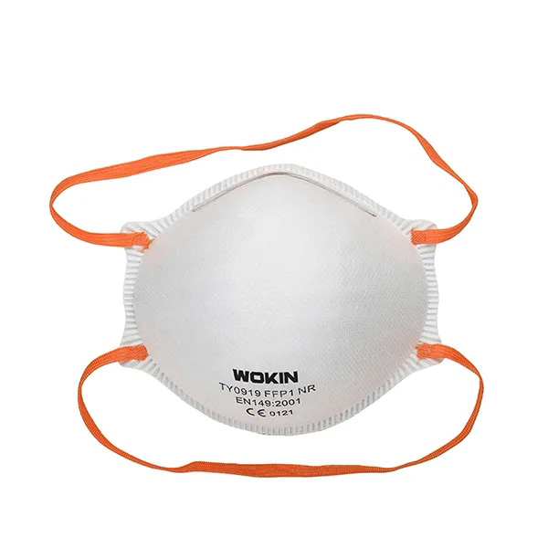 Masca pentru praf WOKIN (industrială), set de 3 bucăți, este destinată protecției căilor respiratorii împotriva prafului și particulelor solide. Este conformă cu EN149:2001+A1:2009, are certificat CE și este clasificată FFP1 NR. Măștile sunt echipate cu curea de cauciuc, nas metalic și clemă nazală reglabilă, asigurând o fixare sigură și reducerea aburirii. De unică folosință, sunt ușoare, confortabile și economice, recomandate pentru lucrări de șlefuire, șmirgheluire și măturare.