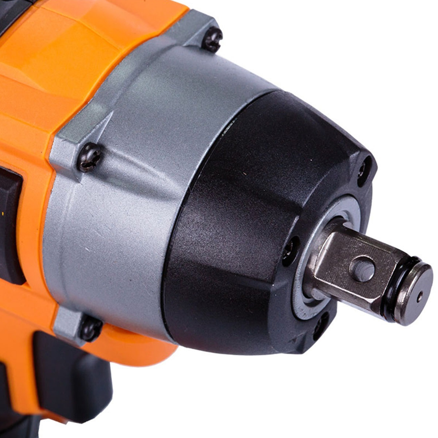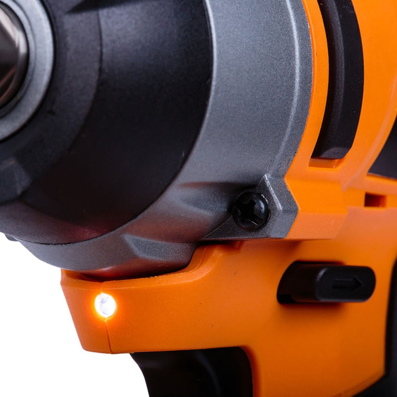 Меcanismul de impact ajută la manipularea conexiunilor dificile și ruginite. Avantajele motorului cu perii includ cuplu mare, încărcătura crescută nu reduce viteza de rotație, lipsa scântei în timpul funcționării garantează siguranța, iar puterea maximă este atinsă instantaneu. Tipul de fixare pătrată 1/2" cu fixare asigură o fixare sigură a capetelor șurubelnite. Mânerul ergonomic cu acoperire antiderapantă oferă o priză sigură pentru controlul instrumentului. Iluminarea zonei de lucru facilitează desfășurarea activităților în condiții de iluminare insuficientă.