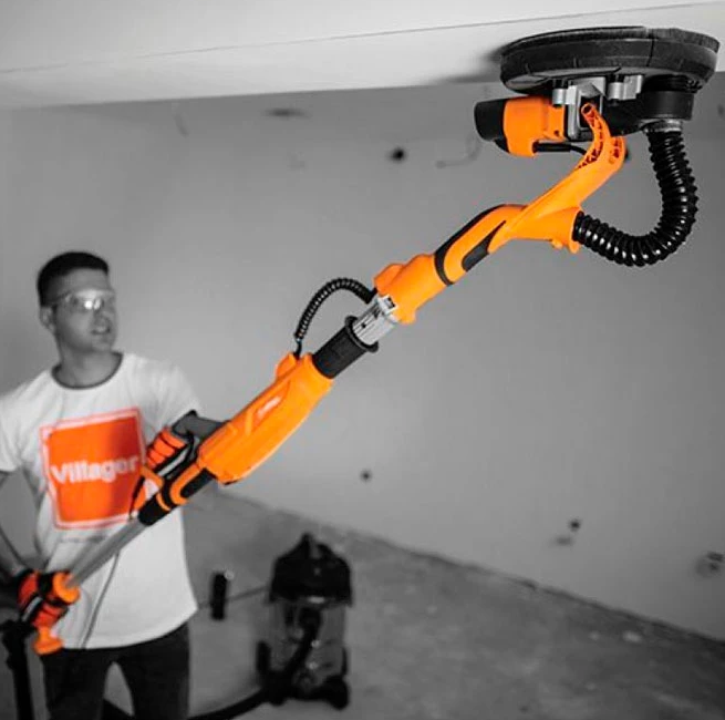 Șlefuitorul pentru perete VILLAGER VDS 625 este un instrument eficient și versatil, ideal pentru prelucrarea panourilor din gips-carton și a altor materiale. Este excelent pentru netezirea rosturilor dintre plăcile de polistiren sau gips-carton, dar și pentru șlefuirea pardoselilor din lemn sau îndepărtarea resturilor de adeziv de pe pereții din beton. Utilizarea acestui aparat economisește considerabil timp față de metodele tradiționale. Cu o putere de 600 W și tensiune de alimentare de 230 V ~ 50 Hz, asigură performanțe constante și fiabile. Viteza de lucru este reglabilă între 600 și 1500 rotații pe minut, permițând adaptarea la diferite materiale. Aparatul este echipat cu un regulator de viteză pentru un control precis. Discul de șlefuire are un diametru de 225 mm, ideal pentru lucrări rapide și eficiente. Lungimea aparatului poate fi ajustată de la 1100 mm la 1650 mm, datorită tubului telescopic inclus. Designul ergonomic și greutatea redusă de 3,2 kg oferă confort în utilizare pe perioade îndelungate. Adaptorul pentru aspirator permite conectarea facilă la un sistem de extragere a prafului. Astfel, spațiul de lucru rămâne curat și sănătos. Aparatul este livrat cu toate accesoriile esențiale pentru utilizare imediată. VILLAGER VDS 625 este alegerea perfectă pentru meșteri amatori sau profesioniști care caută eficiență și precizie.