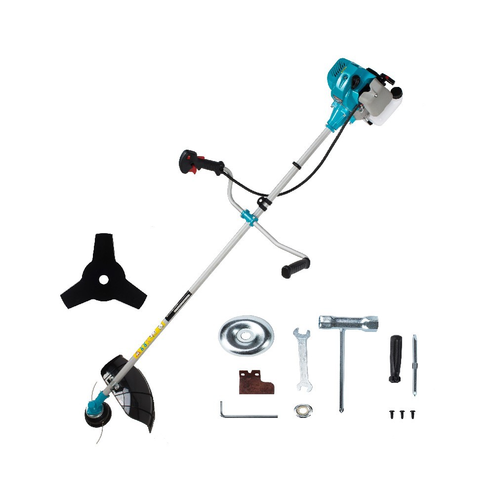 Motocoasa Tatta TM-430 este un instrument puternic, ideal pentru tăierea ierbii dese, întreținerea gazonului, eliminarea buruienilor și a tulpinilor groase. Echipată cu un motor în 2 timpi, cu o capacitate cilindrică de 43 cm³, oferă o putere de 2500 W (aproximativ 3.4 CP) și o turație de până la 9000 rot/min. Funcționează cu un amestec de benzină fără plumb și ulei în raport de 25:1. Motocoasa este dotată cu două tipuri de accesorii de tăiere: cap cu fir de nylon pentru iarbă și gazon, respectiv disc metalic pentru vegetație mai dură. Capul cu fir are alimentare automată, permițând lucru continuu fără oprire. Aprinderea este electronică, iar pornirea se face manual, prin demaror. Transmisia este realizată cu tijă din oțel protejată de un tub de aluminiu rezistent. Motorul este amplasat în partea superioară pentru un echilibru optim în utilizare. Bara este dreaptă, iar mânerul este în formă de U, ergonomic, pentru control maxim. Motocoasa este livrată cu centură/ham de susținere, reducând efortul în timpul folosirii. Lățimea de tăiere cu disc este de 28 cm. Tatta TM-430 este o alegere excelentă pentru grădini, curți și terenuri agricole.