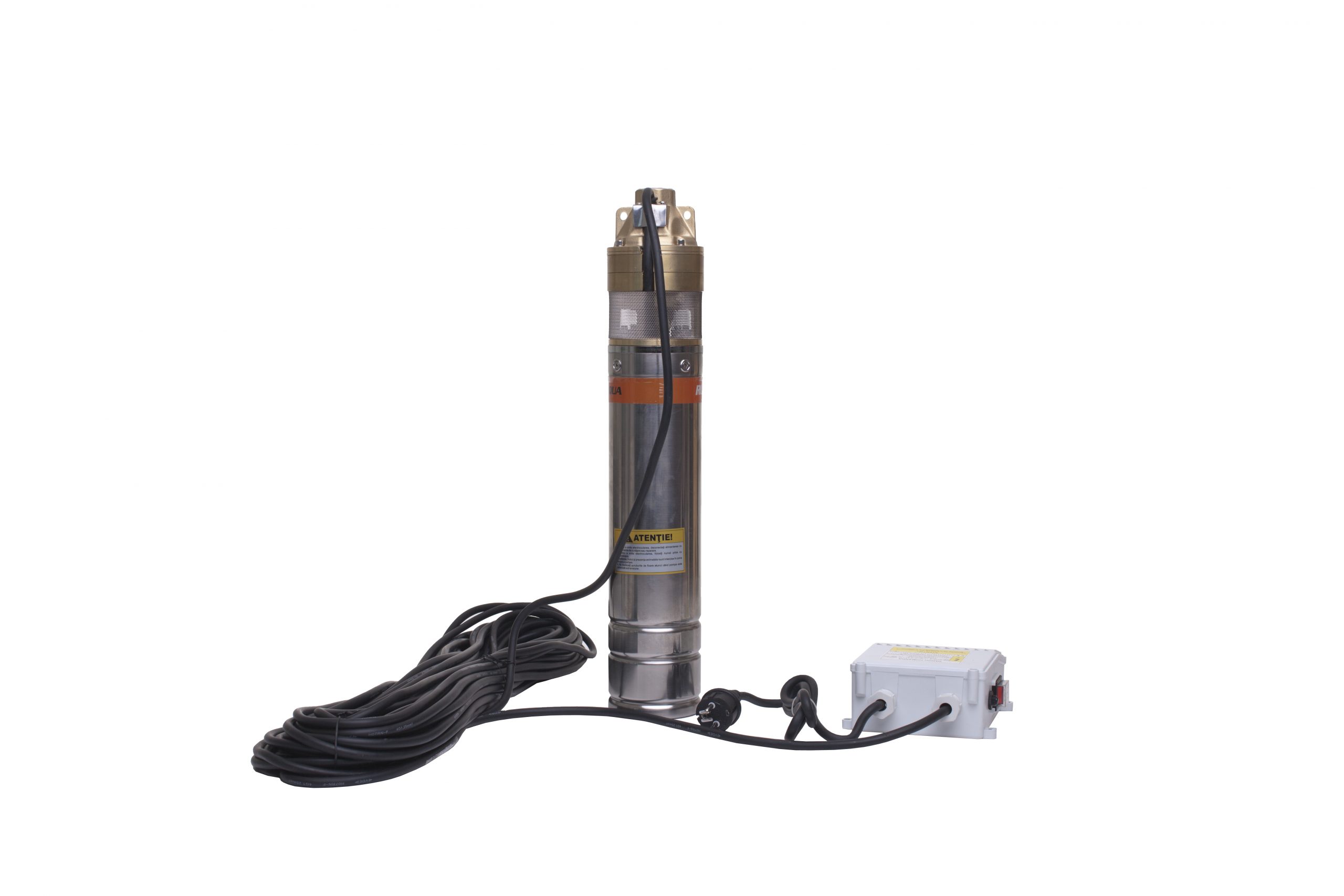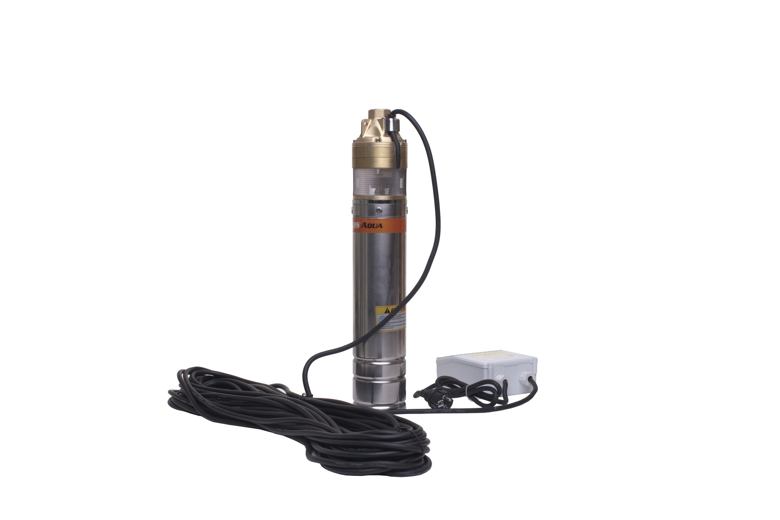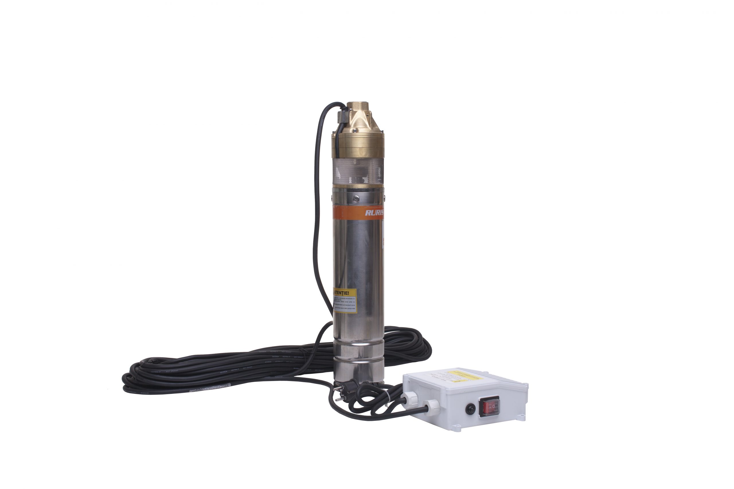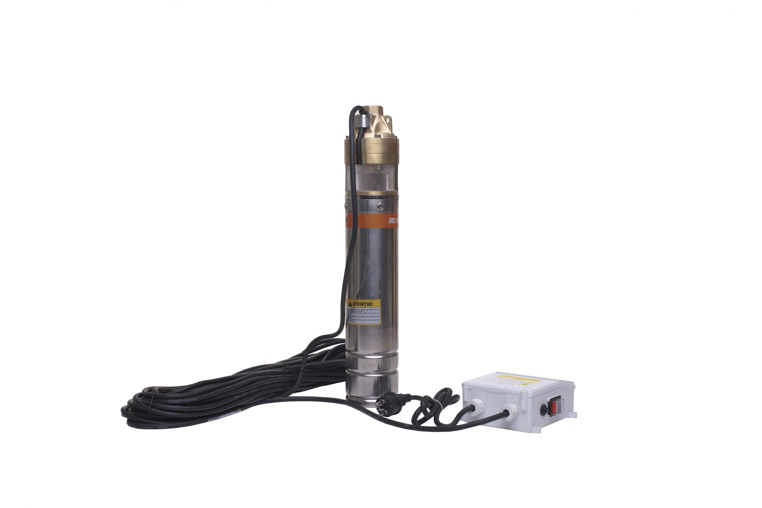 Pompa submersibilă RURIS Aqua 105 este realizată din inox, având motorul cu bobinaj 100% din cupru, în baie de ulei. Este o pompă cu turbină cu 3 etaje, având un debit de 45 l/min. Această pompă este adecvată pentru transferul apei curate din puţuri forate la adâncimi de maxim 140 m, alimentând mici sisteme de irigaţii sau diverse gospodării.Poate fi utilizată independentă sau ca parte componentă a unui grup hidrofor.Pompă submersibilă RURIS Aqua 105 se livrează cu panou de control şi un cablu de 30 m.