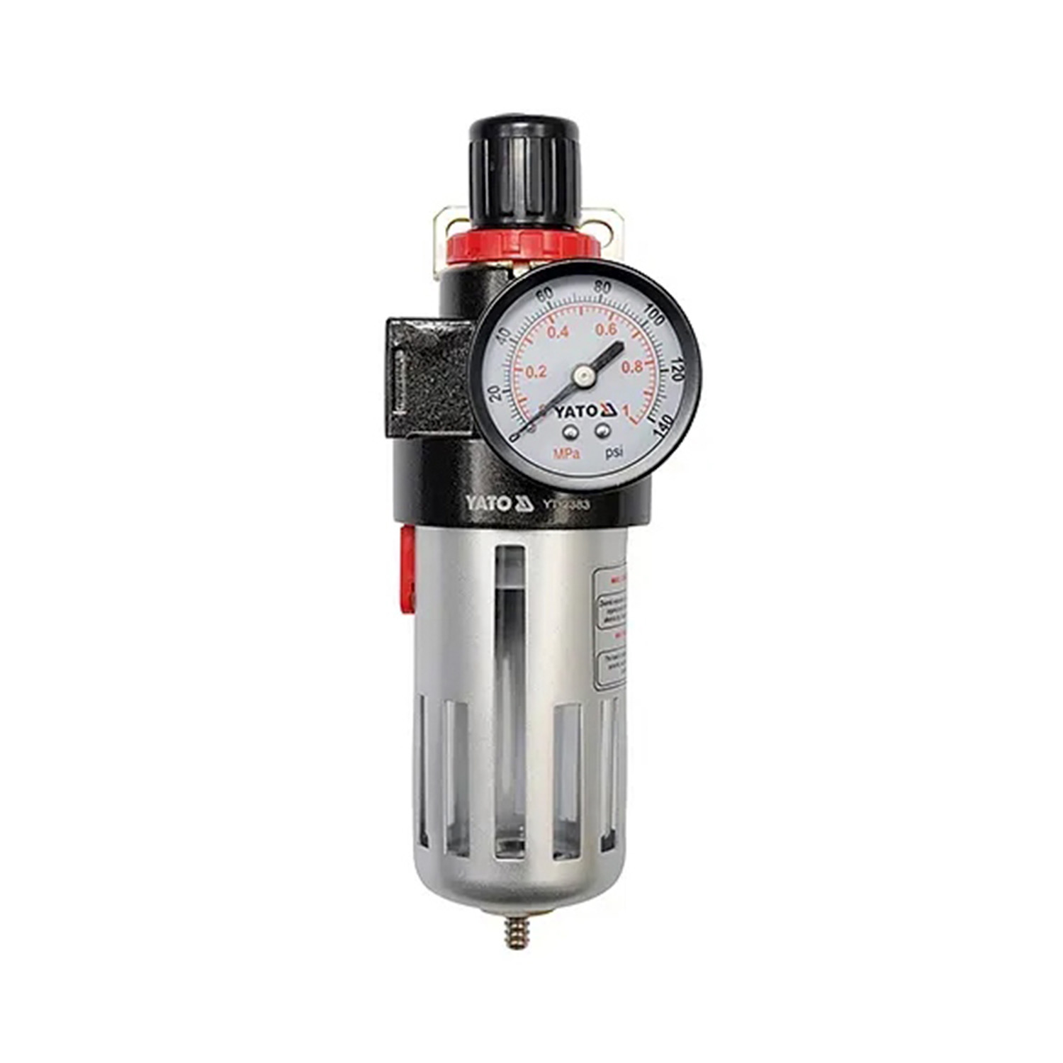 Reductorul cu filtru este un accesoriu esențial pentru compresoare, proiectat să asigure reglarea precisă a presiunii și filtrarea eficientă a impurităților, protejând echipamentele. Fabricat de brandul Yato, se remarcă prin conexiunea de tip 1/2 inch, presiunea maximă de 0,93 MPa și capacitatea de 90 cm³, fiind potrivit pentru utilizarea în ateliere, garaje sau aplicații industriale. Produsul poate funcționa la temperaturi de până la 60°C, oferind performanță stabilă și protecție sigură împotriva particulelor nedorite din aer.