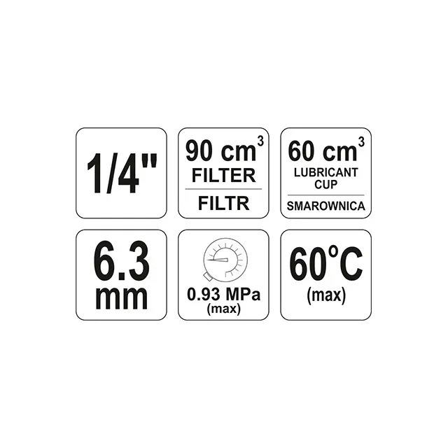 - Reductor cu filtru si gresor 0,93Mpa, 90/60cm3 60C 1/4inch YATO