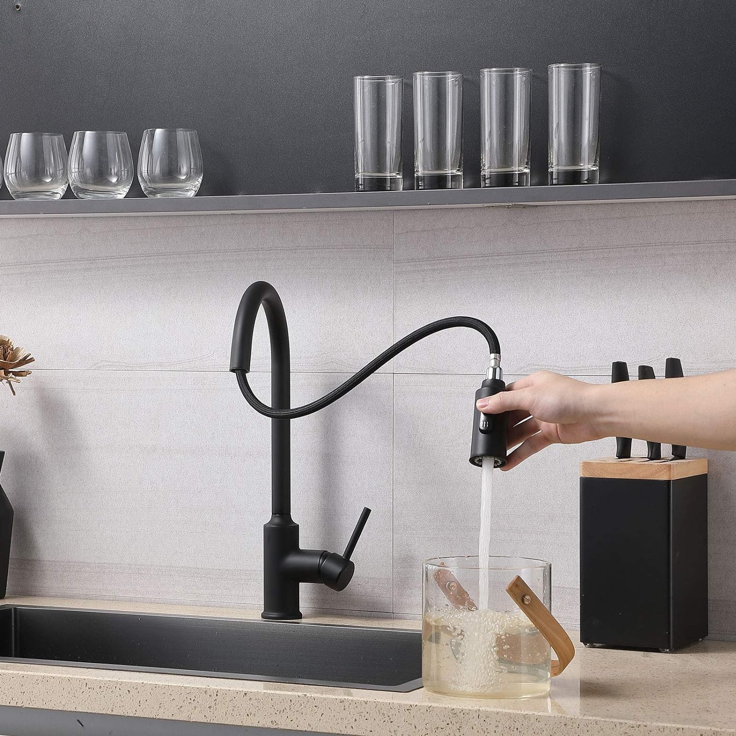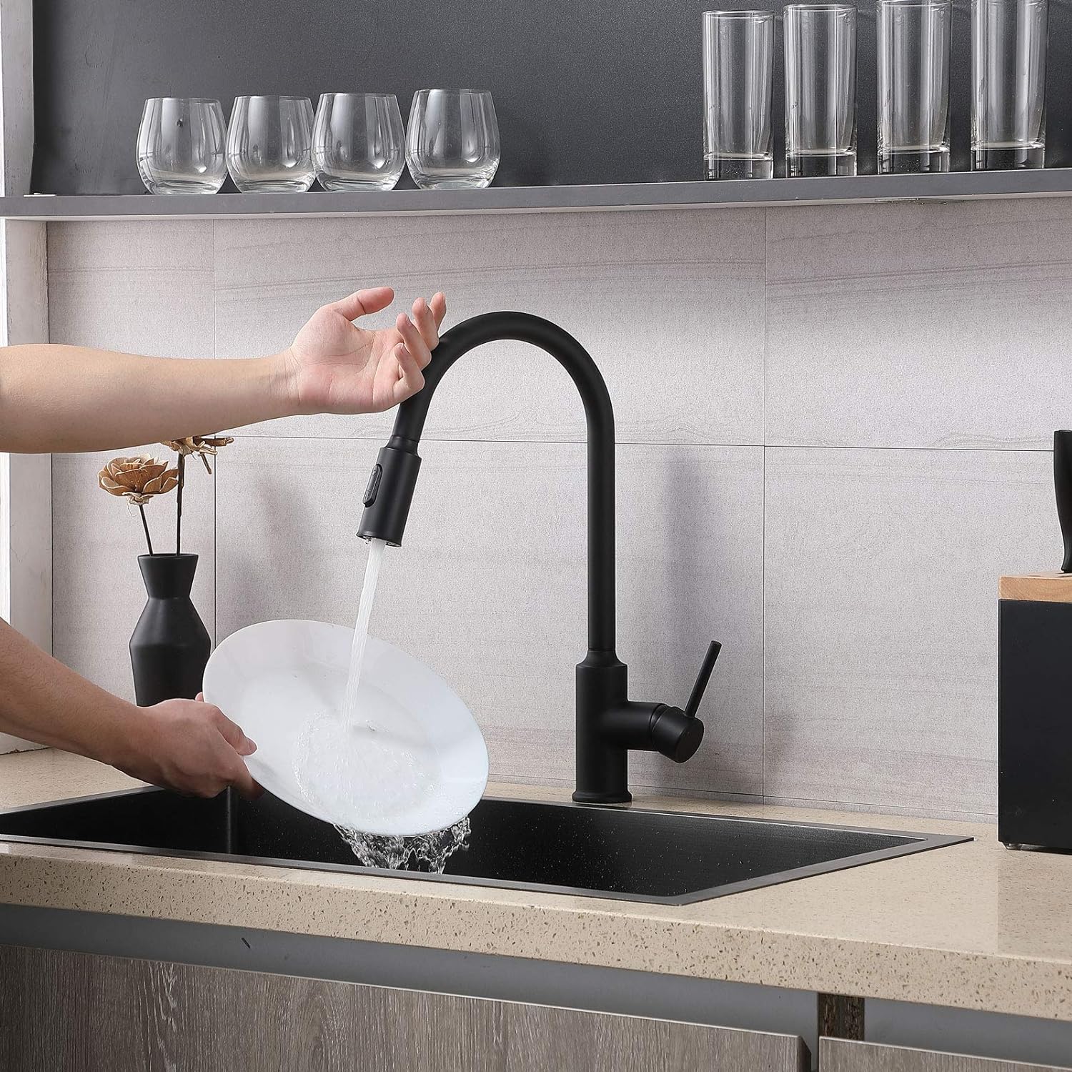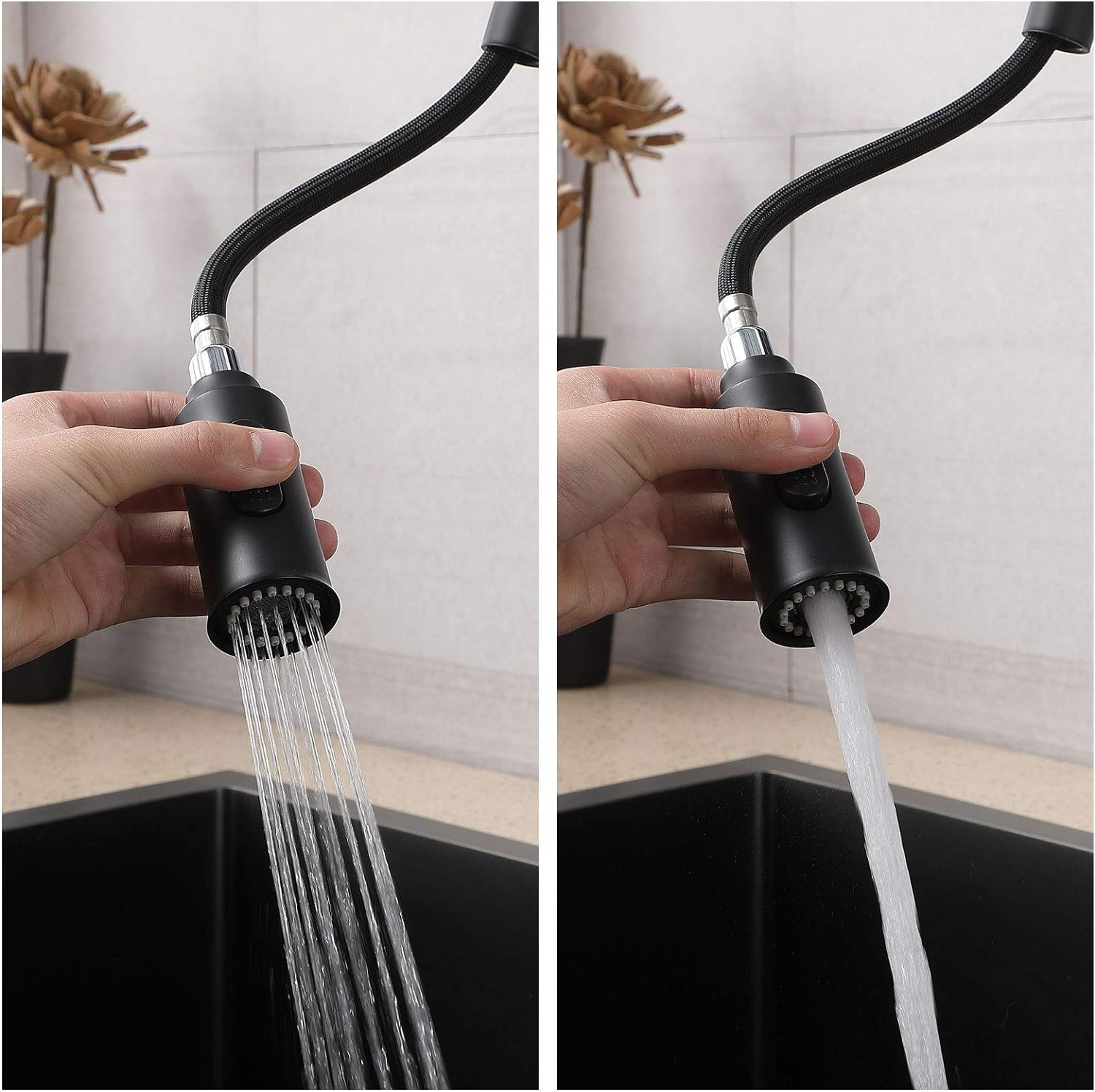 Componente incluse 1 x robinet de bucătărie din oțel inoxidabil, 2 x furtunuri flexibile de conectare, 1 x material de montare.