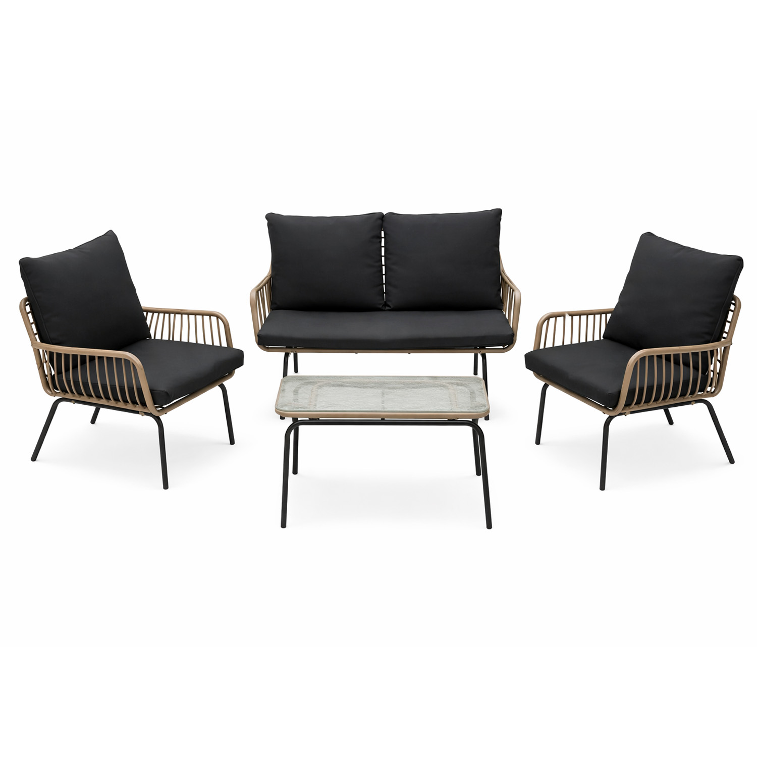 Structura solidă din tub galvanizat asigură durabilitate și stabilitate, în timp ce pernele confortabile, cu o grosime de 5 cm și realizate din material textil de 220g, îți oferă relaxare optimă la fiecare utilizare. Canapeaua generoasă (119x68x73 cm) și scaunele ergonomice (68x65x73 cm) sunt completate de o masă elegantă (75x45x45 cm), prevăzută cu sticlă securizată transparentă de 5 mm, ușor de întreținut și rezistentă.