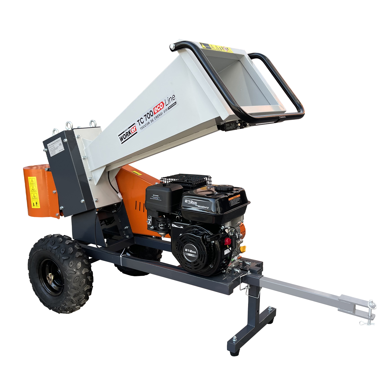 Tocatorul de crengi pe benzină TechnoWorker TC 700 Eco Line este un utilaj performant, conceput pentru mărunțirea eficientă a ramurilor și resturilor vegetale proaspete. Modelul TC 700 face parte din gama Eco Line și se remarcă printr-un raport excelent între performanță și fiabilitate. Echipat cu un motor puternic de 212 cm³, acest tocător poate prelucra crengi moi cu un diametru de până la 70 mm. Dispune de 4 lame rezistente, care funcționează la o viteză de 240 rotații pe minut, asigurând o tocare uniformă și rapidă. Alimentarea se face cu benzină fără plumb 93#, ceea ce îl face accesibil și ușor de întreținut. Rezervorul de combustibil are o capacitate de 3,6 litri, suficient pentru sesiuni de lucru îndelungate fără întreruperi. Uleiul necesar pentru funcționare este în cantitate de 0,55 L și are specificația 10W-30. Pornirea motorului se realizează prin sistemul de recul, cunoscut pentru fiabilitatea sa. Datorită dimensiunilor de 1760×640×1120 mm, tocătorul este stabil și solid în timpul utilizării. Greutatea netă de 110 kg oferă un plus de robustețe, făcându-l ideal pentru lucrări intensive. Designul său compact, dar rezistent, îl face potrivit atât pentru utilizatori casnici, cât și pentru profesioniști. Cuțitele din oțel durabil rezistă la uzură și pot fi înlocuite ușor la nevoie. Este ideal pentru transformarea resturilor din grădină în material pentru compost sau mulci. TechnoWorker TC 700 este o soluție practică pentru întreținerea spațiilor verzi mari și a gospodăriilor. Utilajul reduce semnificativ volumul de deșeuri vegetale și optimizează gestionarea resturilor lemnoase.