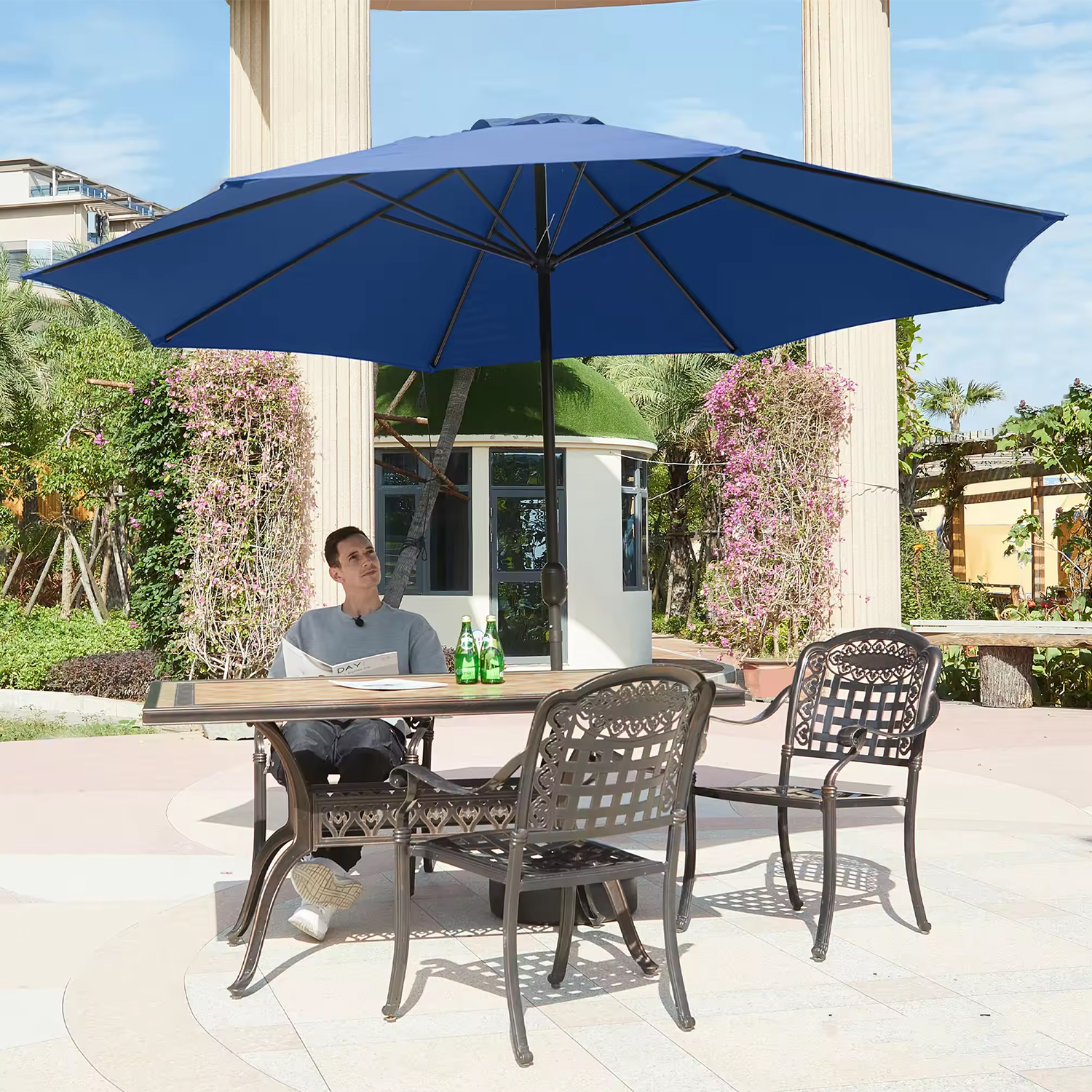Umbrela de grădină MURCIA de culoare albastră este ideală pentru utilizarea pe terasă, creând umbră și protecție împotriva soarelui. Cadru umbrelei este realizat din metal durabil, asigurând longevitate și stabilitate. Umbrela are formă rotundă și dimensiuni de 270x270 cm, ceea ce permite crearea unei zone mari de umbră. Este echipată cu un stâlp central și un sistem clasic de deschidere, făcând utilizarea sa simplă și convenabilă. Nu există posibilitatea de reglare a înălțimii, dar înălțimea totală a umbrelei este de 250 cm, suficientă pentru majoritatea teraselor. Unghiul reglabil permite ajustarea umbrei în funcție de poziția soarelui. Materialul umbrelei are o densitate de 180 g/m², oferind protecție fiabilă împotriva razelor ultraviolete. Culoarea albastră și materialul din poliester fac umbrela elegantă și rezistentă la condițiile meteorologice. Suportul nu este inclus și trebuie achiziționat separat. Umbrela are 8 spițe și diametrul tijei este de 38 mm, oferind rezistență suplimentară structurii.