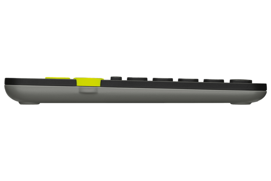 . Радиус действияBluetooth®: до 10 м 3 Время работы батареек: 2 года 4 Кнопка включения/выключения питания Световой индикатор заряда батарейки Одна клавиатура, совместимая с тремя устройствами Размеры устройства: Высота: 20 мм Ширина: 299 мм Толщина: 195 мм Вес: 820 г